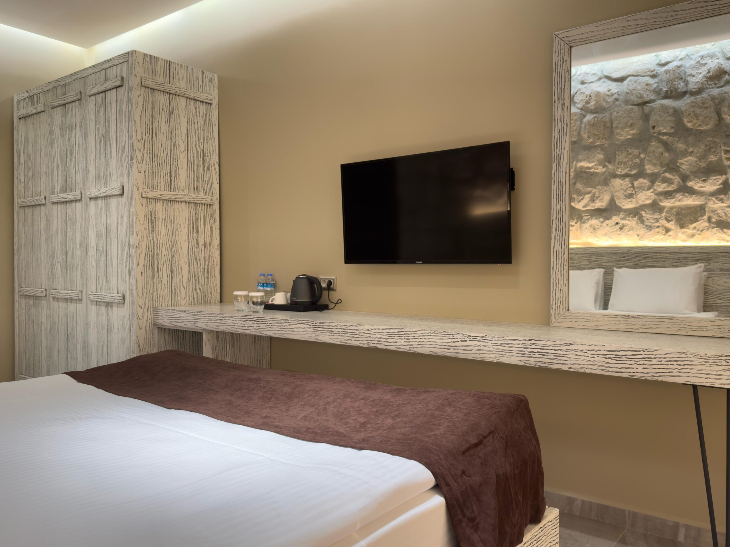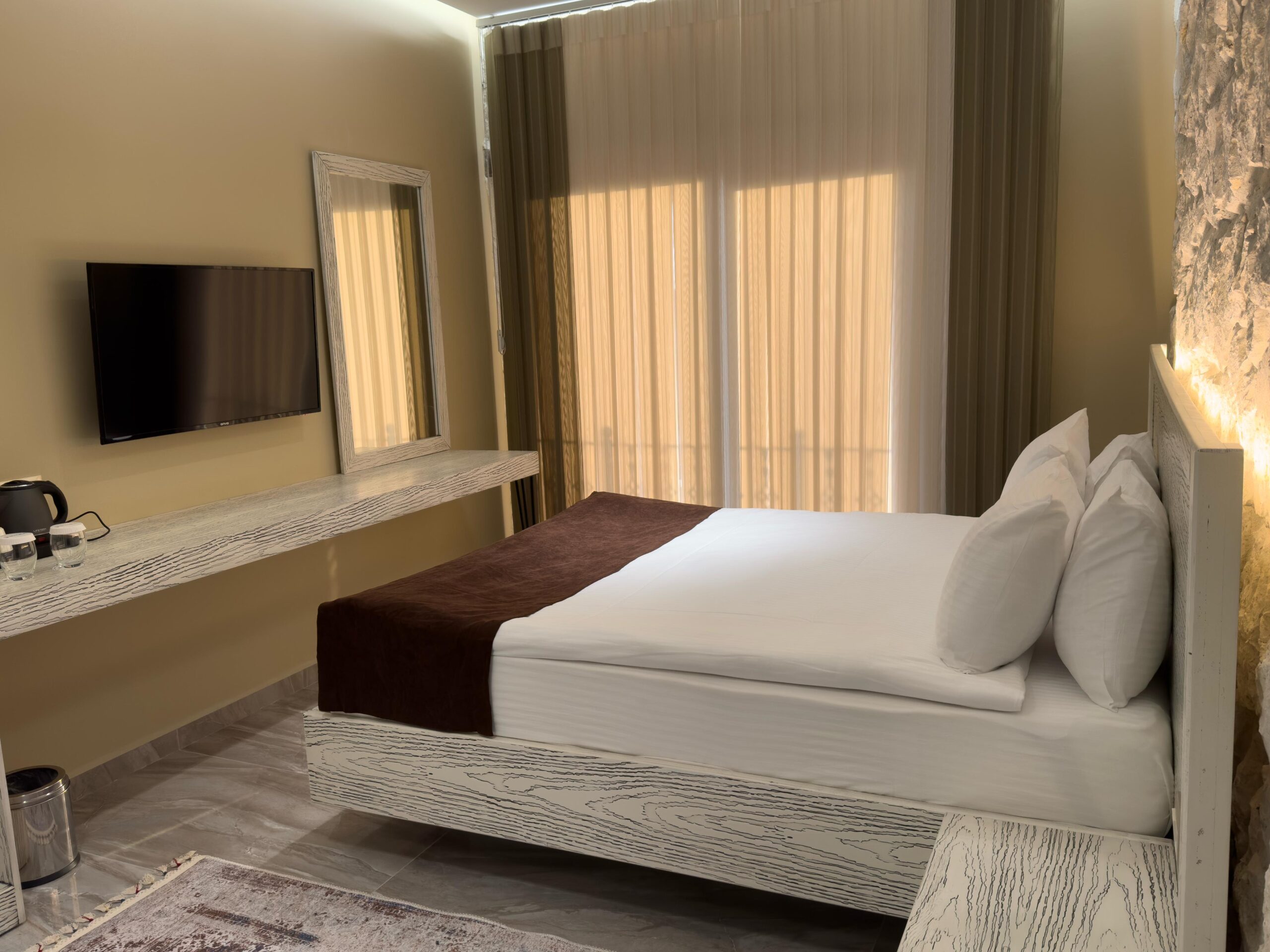 Standart odamız, küçük ama etkileyici bir doğa manzarası sunar. Taş mimarinin nefes aldıran yapısıyla bütünleşen bu manzara, doğanın tüm sadeliğiyle size eşlik eder.