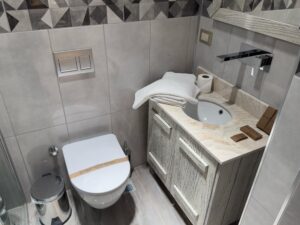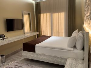 Modern duş sistemine sahip banyosu ve yalın tasarımı ile hem fonksiyonel hem de huzurlu bir ortam sağlar. Doğal dokular ve sade çizgilerle donatılan bu oda, doğanın huzurunu konforla buluşturan bir deneyim arayanlar için uygundur.